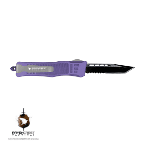 Like all RavenCrest Tactical knives, the Mini RCT-1 Raven is built for hard use. Each Mini Raven comes standard with a 2.75-inch 440c blade that is meticulously hand sharpened to a razor’s edge ready to cut right out of the box. The ergonomic handles on the Mini are made of high-quality Zinc Alloy that is individually hand coated with Cerakote which gives them maximum hardness and corrosion resistance. The button placement along the spine of the handle allows for lighting fast ambidextrous openings right from the operators pocket. The Mini Raven also allows for right and left-hand users to pocket carry with its stainless steel reversible pocket clip. If that wasn’t enough the Mini Raven OTF knife also comes equipped with a “battle tested” glass breaker pommel.